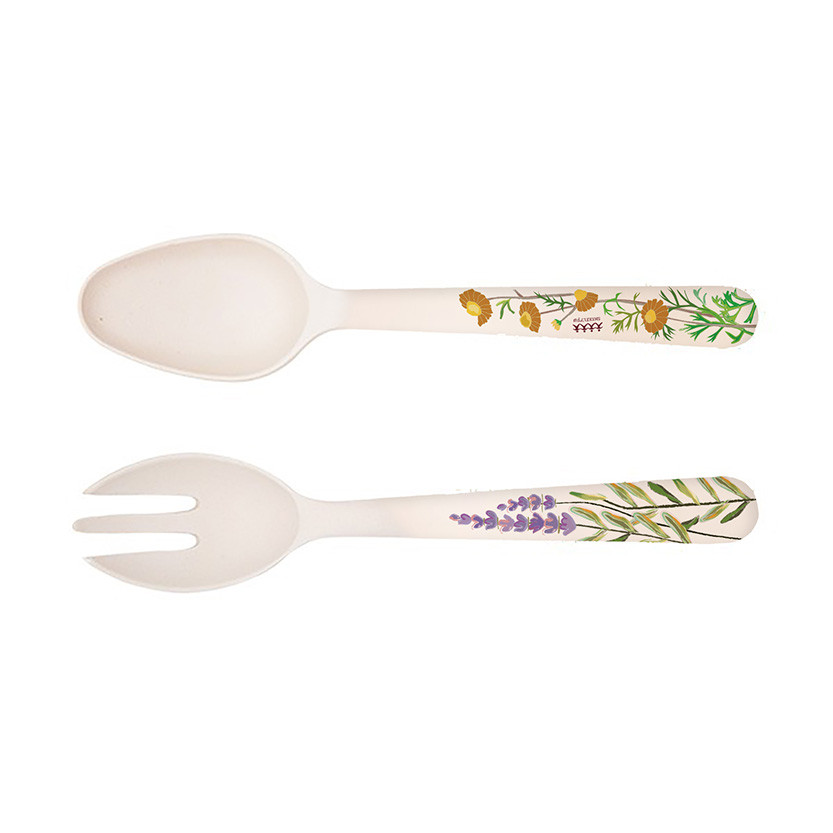 סט כפות להגשה מבמבוק מסדרת צמחי תבלין באיורים של יפית ברוך