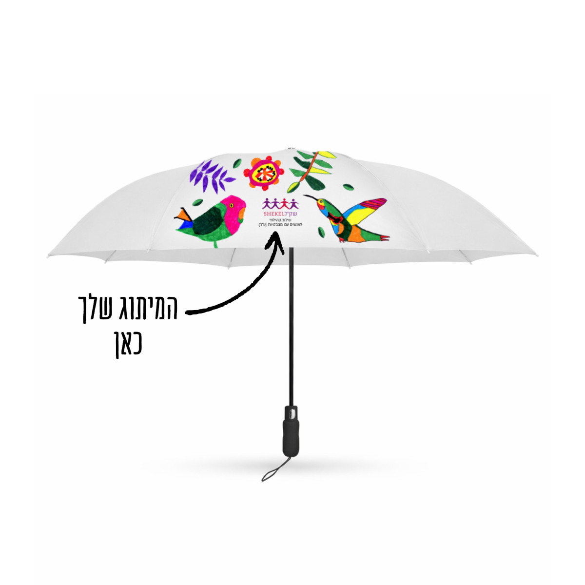 מטריה מתקפלת מעוטרת באיורים של אמני שק"ל