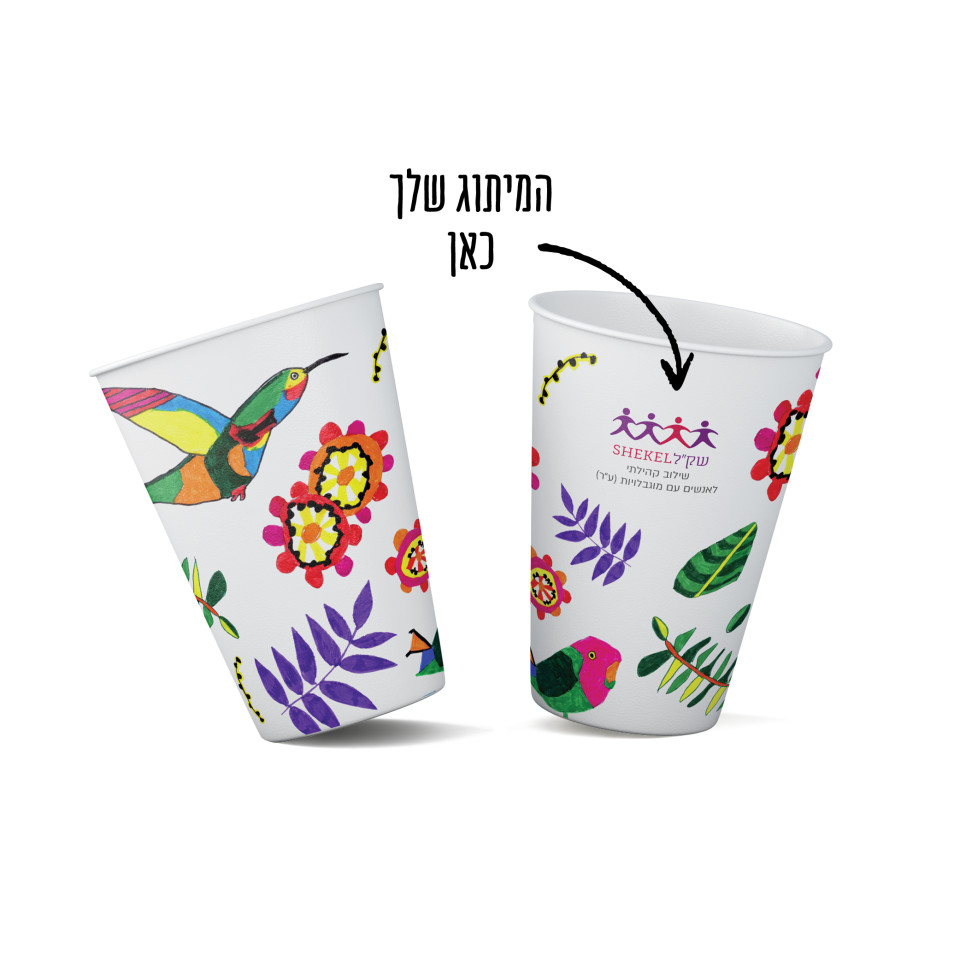 כוסות חד פעמיות עם מגוון איורים פרי יצירתם של אמני שק"ל