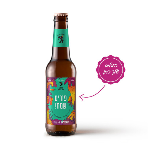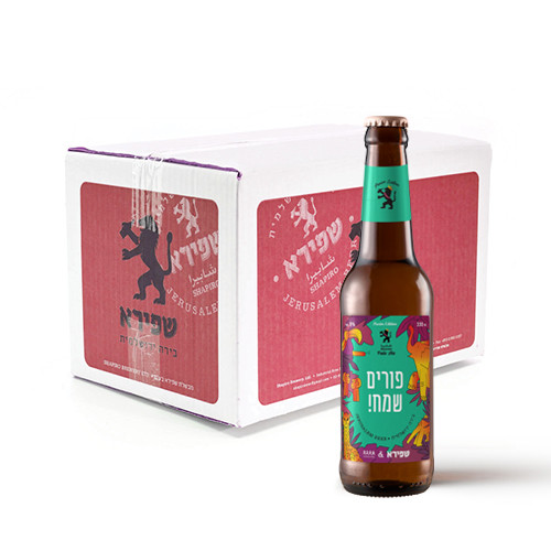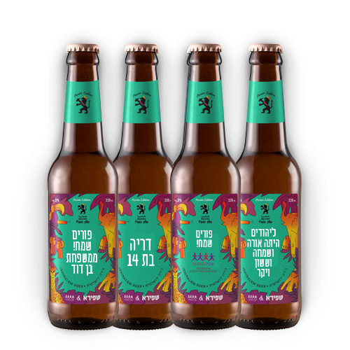המהדורה הפורימית להזמנת ארגז 24 בקבוקים (330 מ"ל לבקבוק) עם כיתוב אישי לבחירתכם על תווית הבירות או ארגז 12 בקבוקים עם כיתוב: פורים שמח!